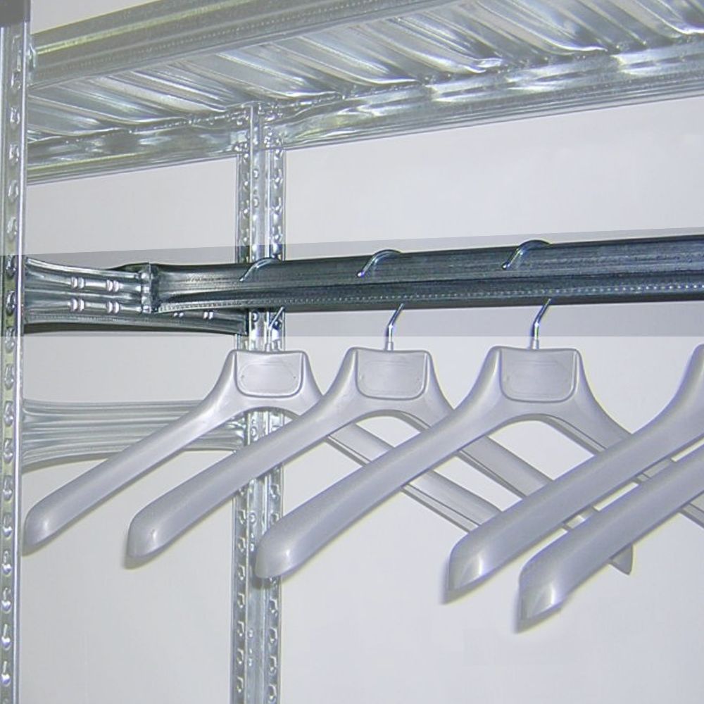 Med en bøjlestang kan du nemt omdanne din lagerreol til en praktisk løsning for ophæng af tøj på bøjler.